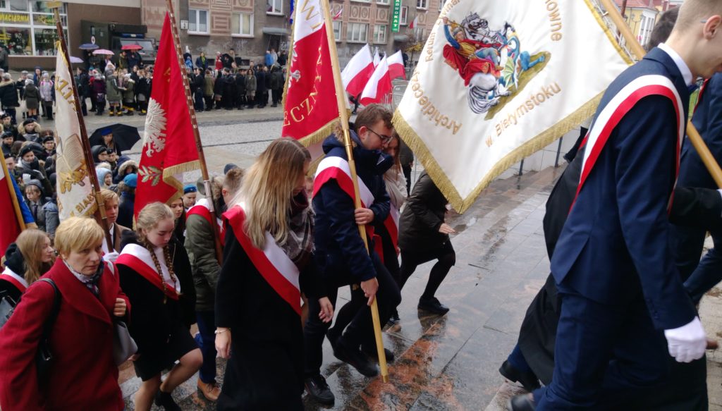 Udział Pocztu Sztandarowego ZSTiO w obchodach Narodowego Święta Niepodległości w Katedrze pw. Wniebowzięcia NMP Białymstoku.