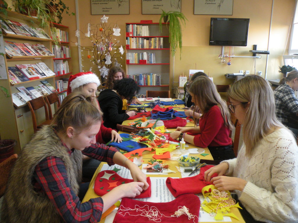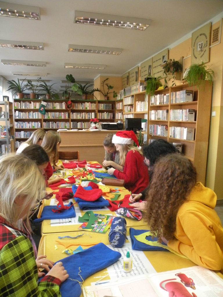 W bibliotece szkolnej już czuć klimat zbliżających się świąt. Przygotowałyśmy coś dla ucha i… rąk. Nasze zdolne uczennice słuchały powieści Charlesa Dickensa „Opowieść wigilijna” i ozdabiały świąteczne skarpety. Kreatywności możemy im pozazdrościć a efekty oceńcie sami.