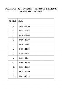 Skrócone lekcje 14, 15, 16 września 12 września 2021Aktualności0 Komentarze 0 W dniach 14, 15, 16 września w ZSTiOzOI obowiązuje zmieniony rozkład dzwonków.