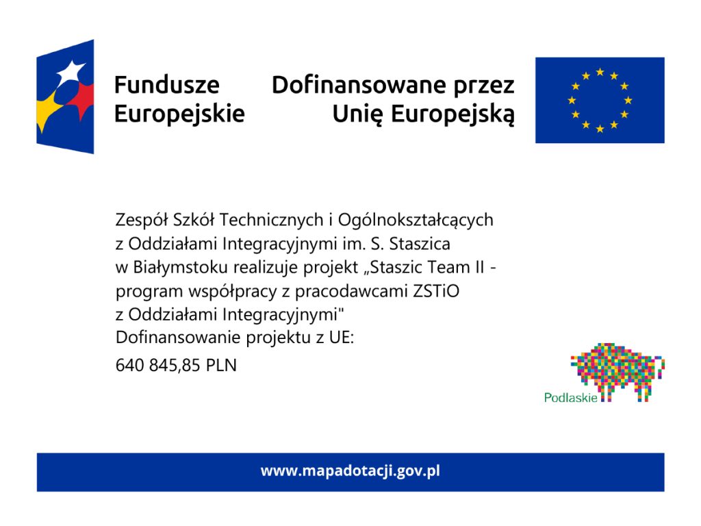 TYTUŁ PROJAKTU: „Staszic Team II – program współpracy z pracodawcami ZSTiO z Oddziałami Integracyjnymi”