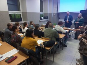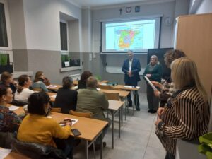 19 lutego 2025 roku uczniowie i rodzice wyjeżdżających na staż do Hiszpanii zapoznali się z zasadami skutecznego komunikowania się z hiszpańskimi rówieśnikami, dyskutowano o sytuacjach jakie mogą nas spotkać podczas stażu i w czasie wolnym, jak radzić sobie ze stresem i z kim kontaktować się, jak będą wyglądać pierwsze dni w Grenadzie.