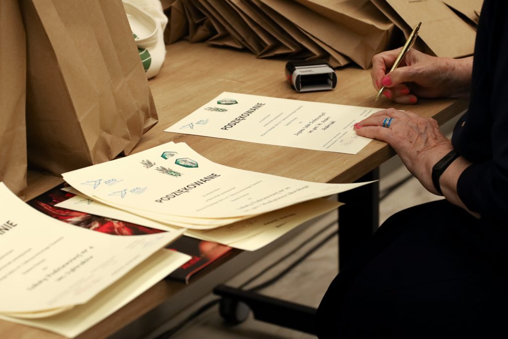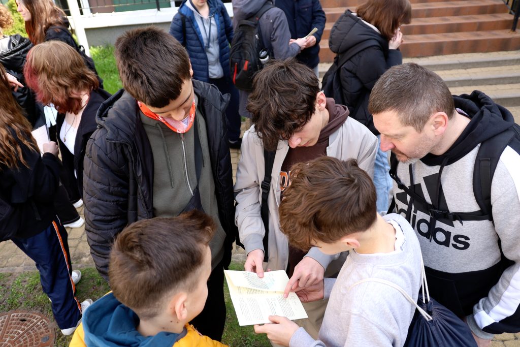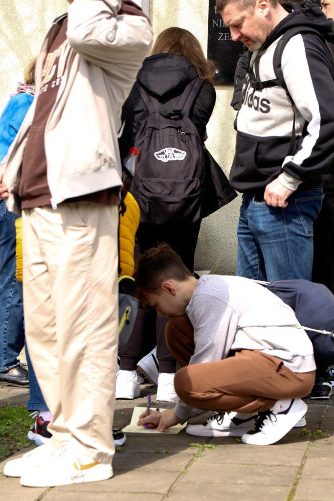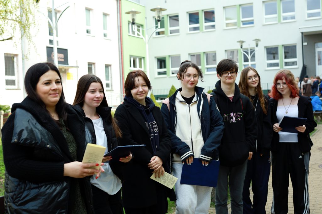 Kolejnym etapem zajęć były warsztaty. Młodzież wykonywała zakładki do książek techniką makramy. Potrzebowaliśmy tylko sznurka i cierpliwości. Motywacją do pracy była piosenka Stanisława Sojki „Tolerancja”, która uczy wrażliwości, otwarcia na problemy innych ludzi, gdzie raj realizuje się jakby już tu na ziemi. Bez empatii i tolerancji do drugiego człowieka jest niemożliwy do osiągnięcia.